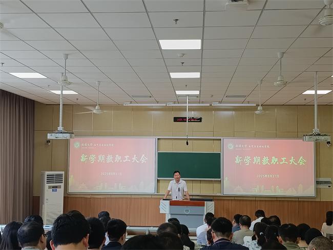 副经理(主持工作)张新松全面回顾了暑期工作,他指出,暑假期间大家克服高温天气影响,持续开展教科研工作,学院各项工作有序推进,成果颇丰,成功获批6项国家自然科学基金项目,新增单项经费500万横向项目1项。新学期,他要求大家要锚定目标、精准发力,细化工作举措,压实工作责任,确保高质量完成年度目标任务,并要求全体教职工以饱满的热情、务实的作风投入到新学期的工作中,共同为学院的高质量发展贡献力量。
