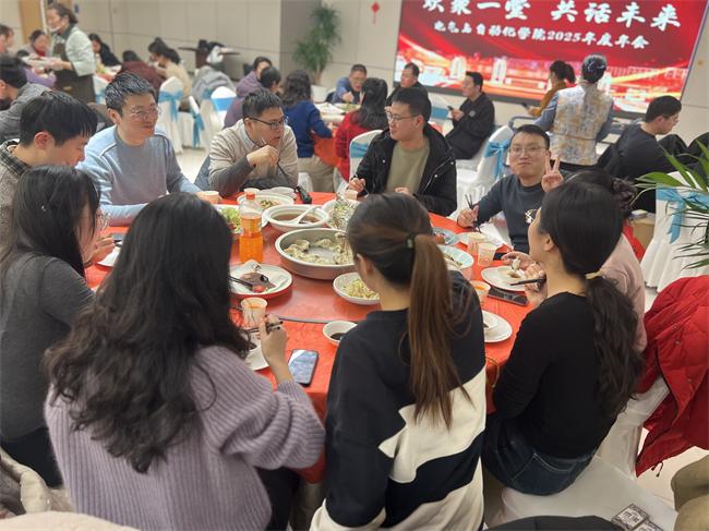 欢乐的时光在温馨的团圆聚餐中推向高潮。餐桌上佳肴丰盛,老师们畅聊心声,现场氛围热烈而融洽。